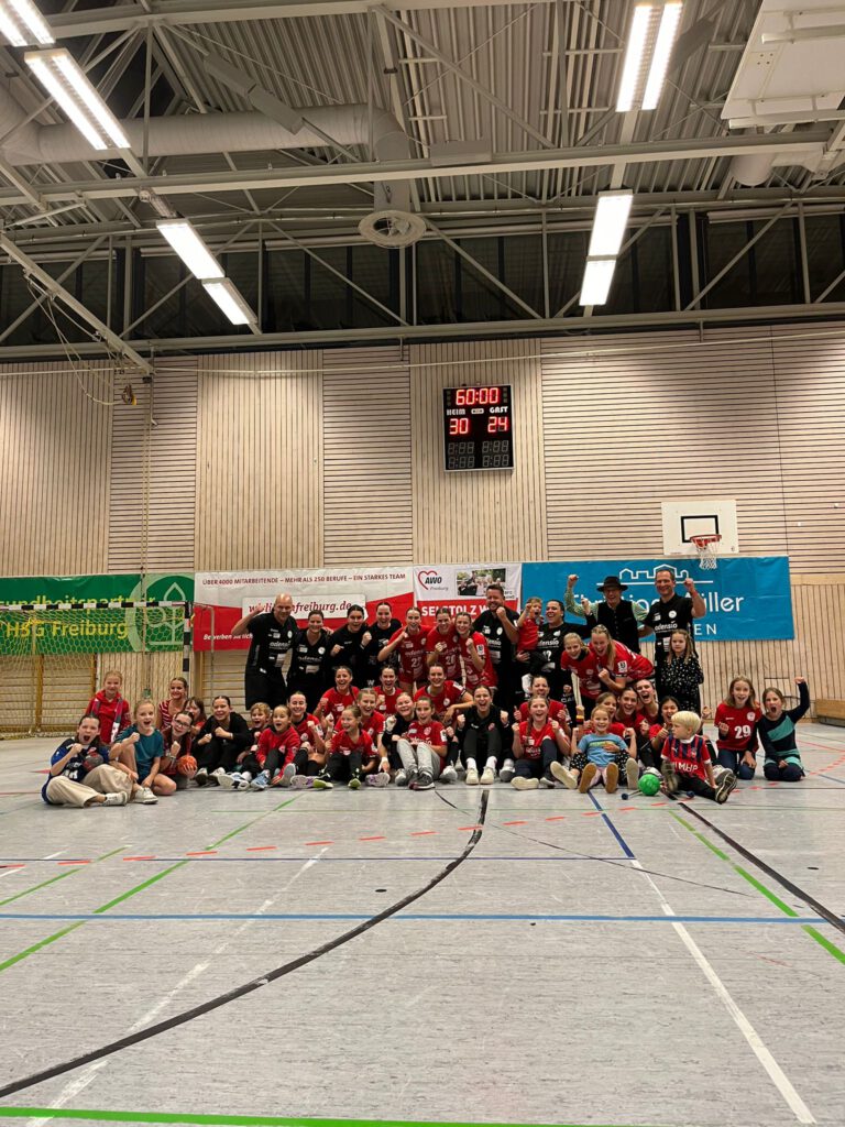 Nun galt es die gute Leistung von Halbzeit 1 nochmal in Halbzeit 2 auf das Parkett zu bringen. Uns das gelang über weite Strecken sehr gut. Im Angriff spielten die Mädels häufig geduldig bis zum freien Wurf und in der Abwehr wurde weiterhin beherzt zugelangt. Einziges Manko laut Trainer Igor Bojic war, dass die HSG zu viele Würfe über den Rückraum zuließ. Zum Glück hatte dies aber keine schlimmeren Folgen für die Heimmannschaft. Das Trainerteam konnte somit allen spielfähigen Mädels (Hannah Person konnte aufgrund ihrer Verletzung noch nicht eingesetzt werden) Spielzeit geben und fast alle Feldspielerinnen konnten sich in die Torschützenliste eintragen – einzig Sarah Wenger konnte ihren letzten Wurf unter Kontakt und ungewohnter Position leider nicht verwandeln. Doch dieser letzte Fehlwurf trübte die Stimmung in der Halle nicht. Im Gegenteil, alle feierten gemeinsam den starken Heimauftritt – Endstand 30:24. Passend zur Oktoberfestzeit erhielt jeder Fan in Tracht ein Freigetränk. Die Stimmung war also ausgelassen gut und anschließend wurde der Sieg noch ordentlich in der Halle und dann in der Stadt gefeiert.